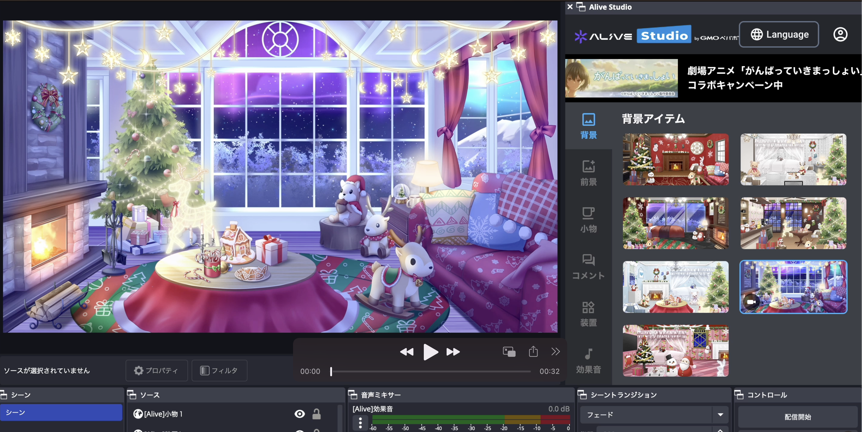 お待たせしました!クリスマス配信に使える背景素材と小物素材を追加しました🎅