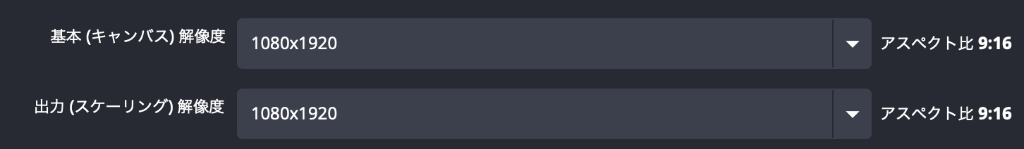 1.OBS>設定>映像から、解像度を1080x1920に変更