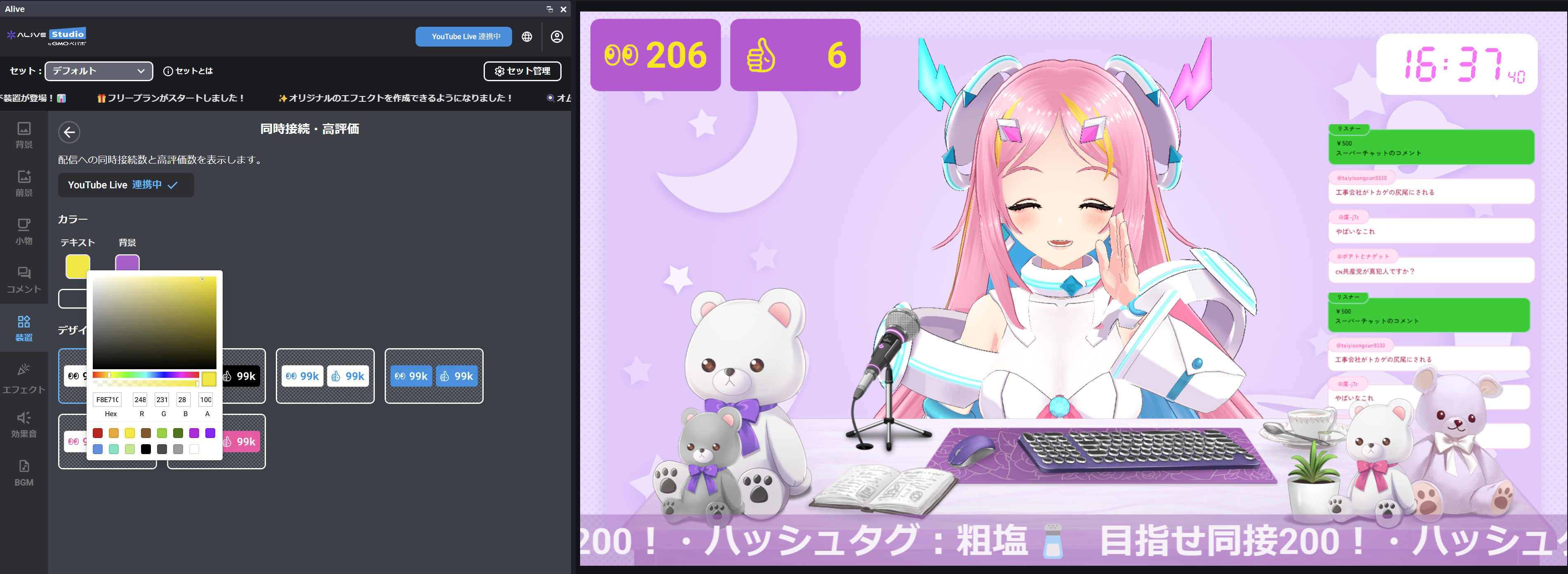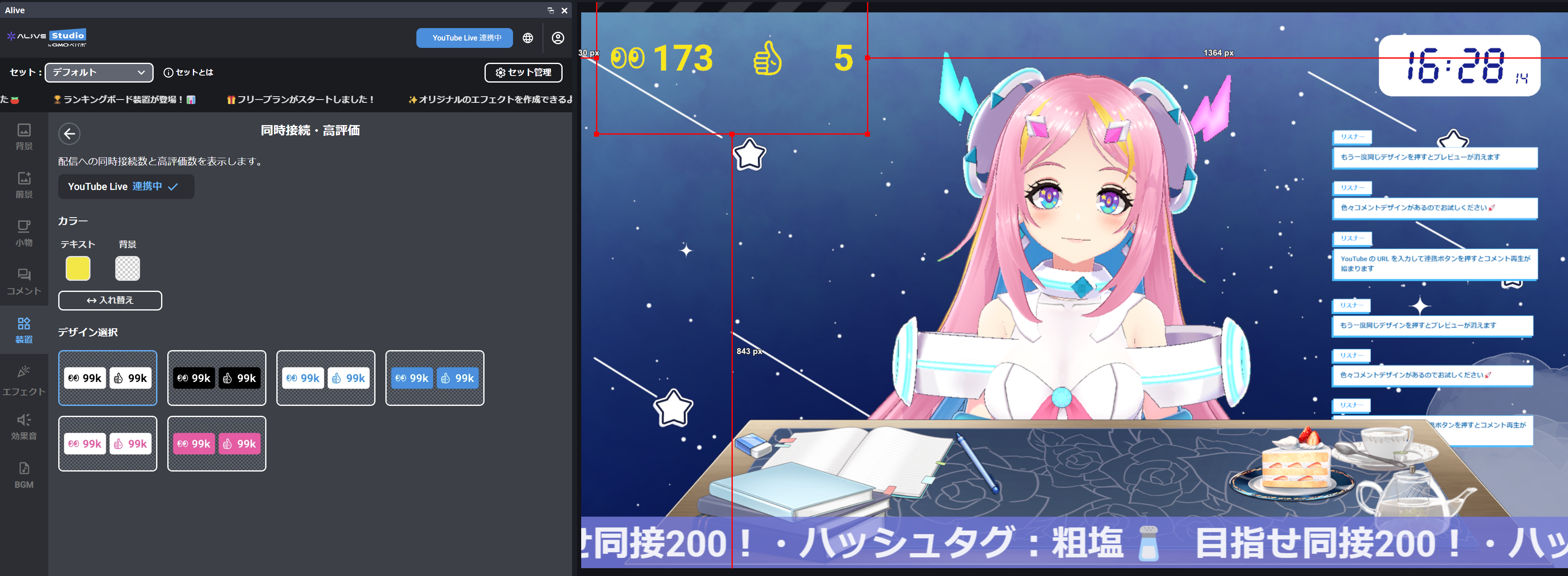 Alive StudioでYouTubeの同接・高評価カウンターを使うには?
