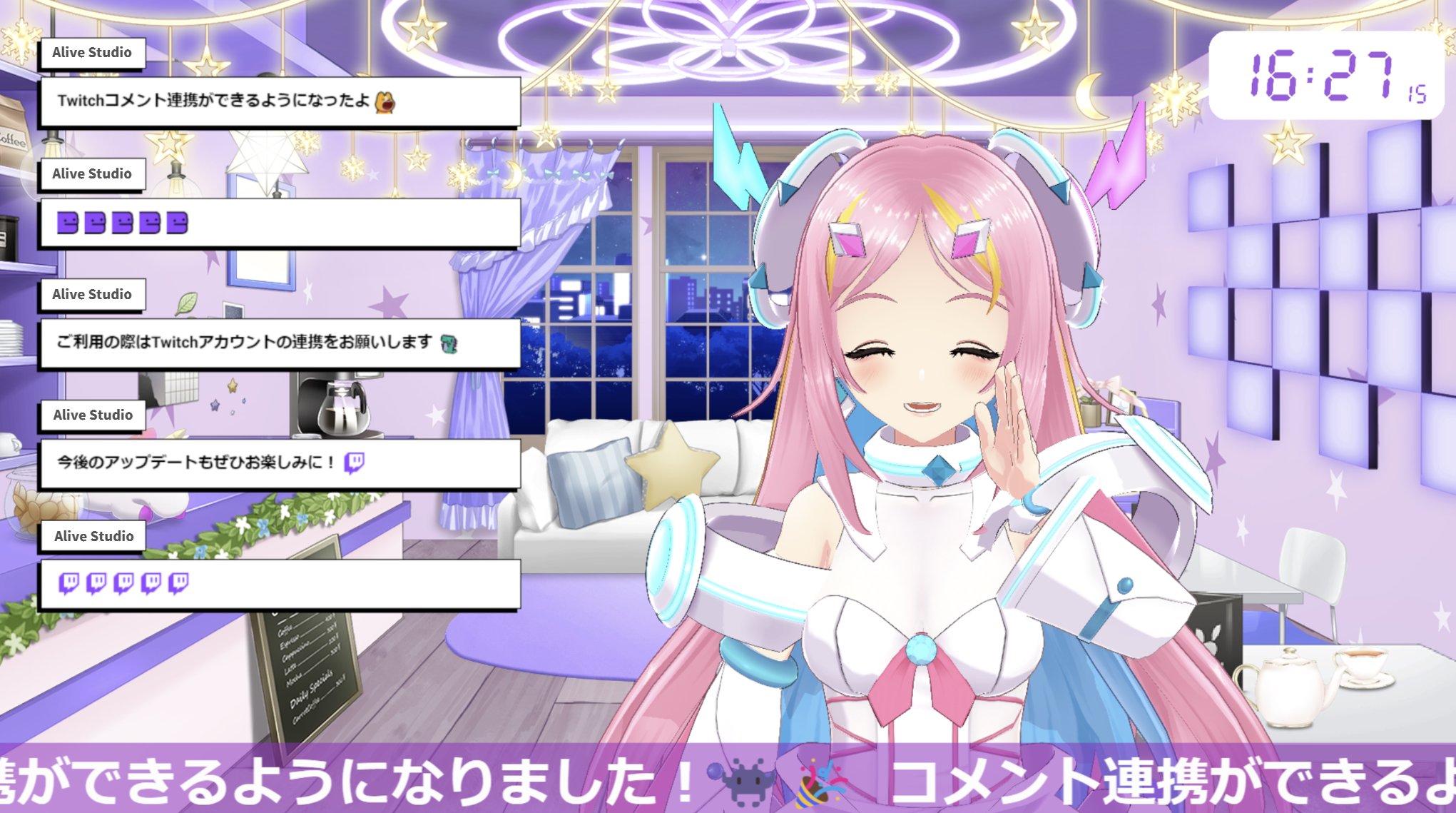 Twitchログイン連携に引き続き、連携したTwitchの配信と接続し、コメントやコメント連動エフェクトを表示できるようになりました![]()