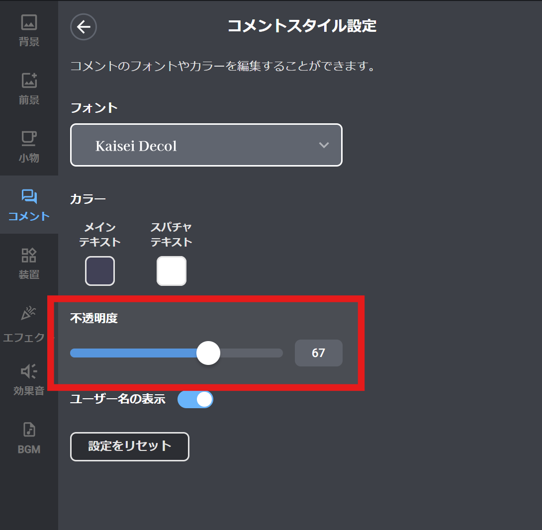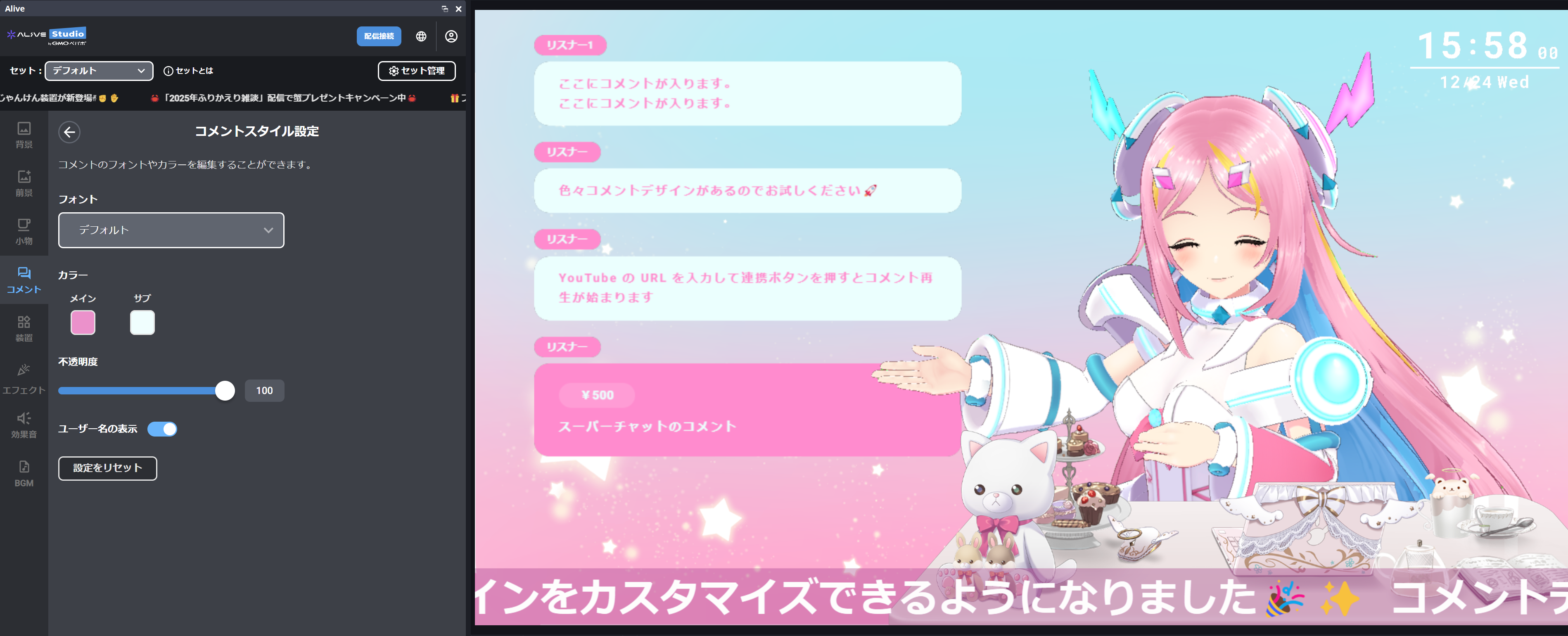 コメントを、配信画面の雰囲気に合わせて細かくカスタマイズできるようになりました✨