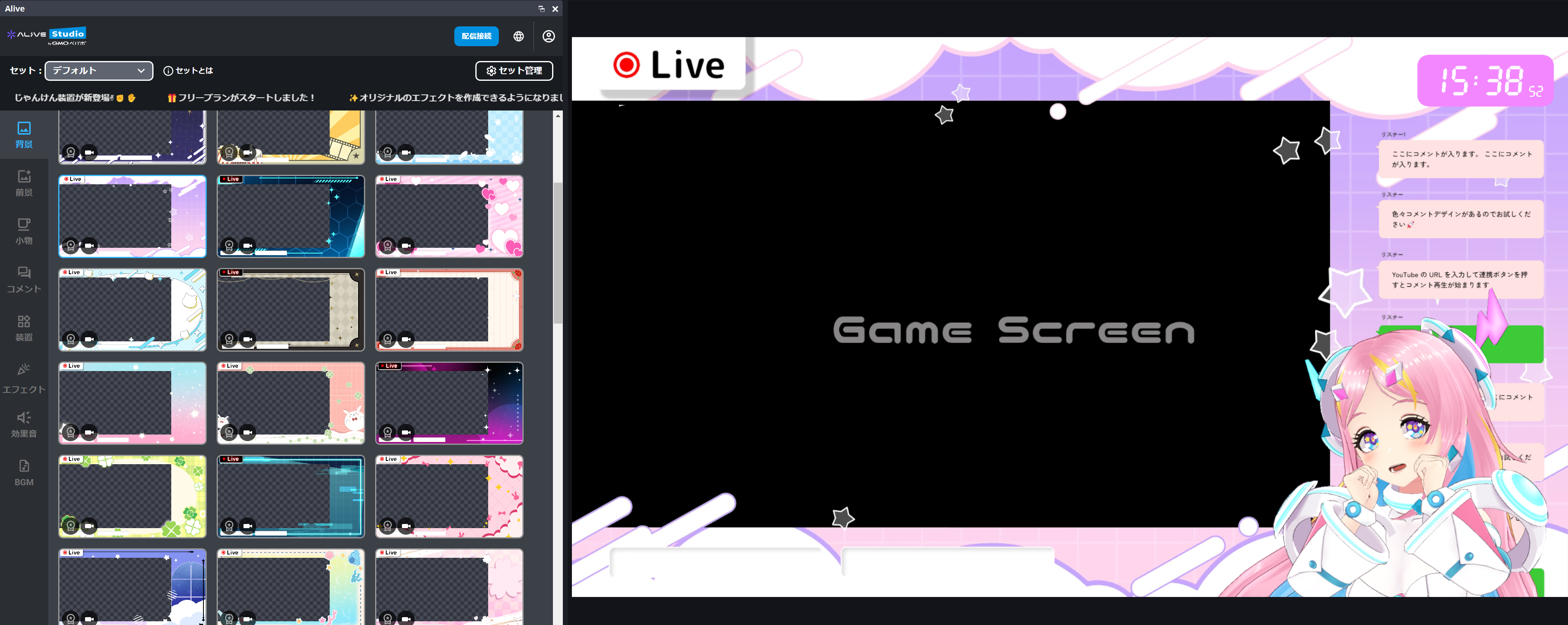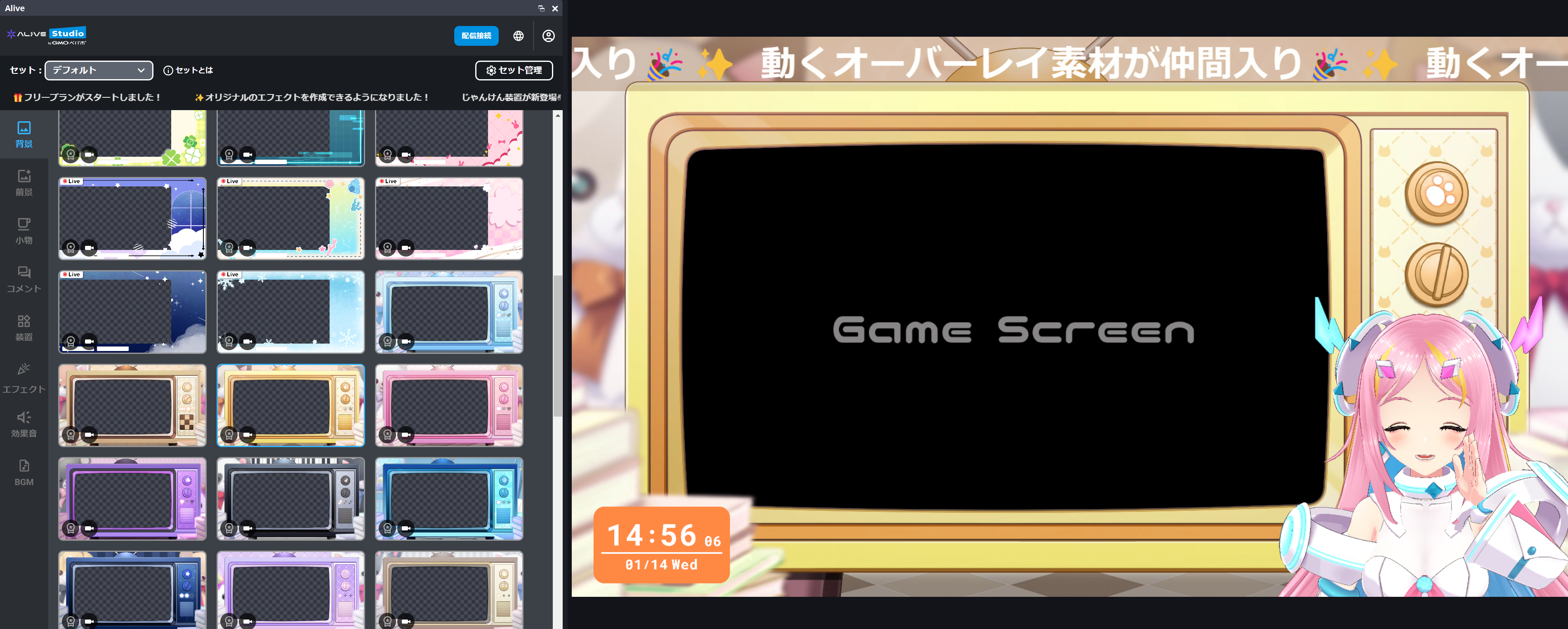 ところどころがふわっと動いて、画面をリッチに見せつつも主張しすぎず配信になじみます🪄