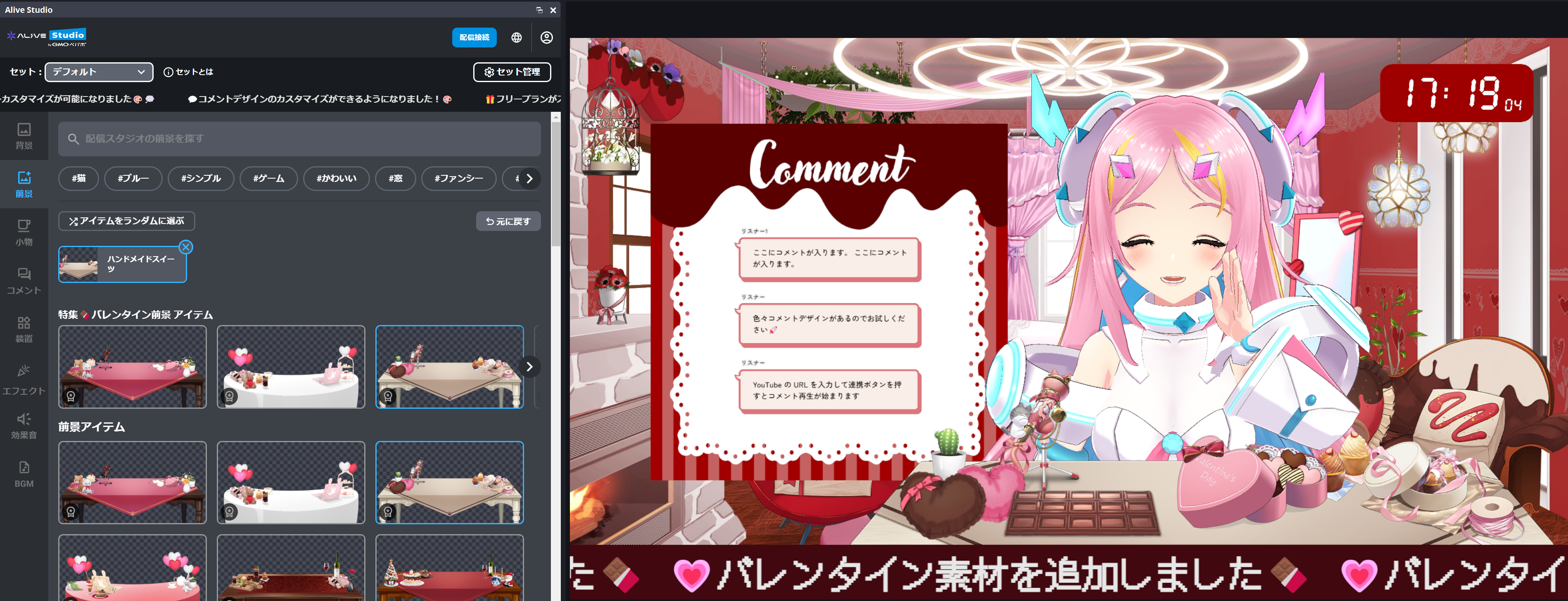 バレンタイン素材を使って、ぜひかわいい配信画面を作ってみてくださいね💌